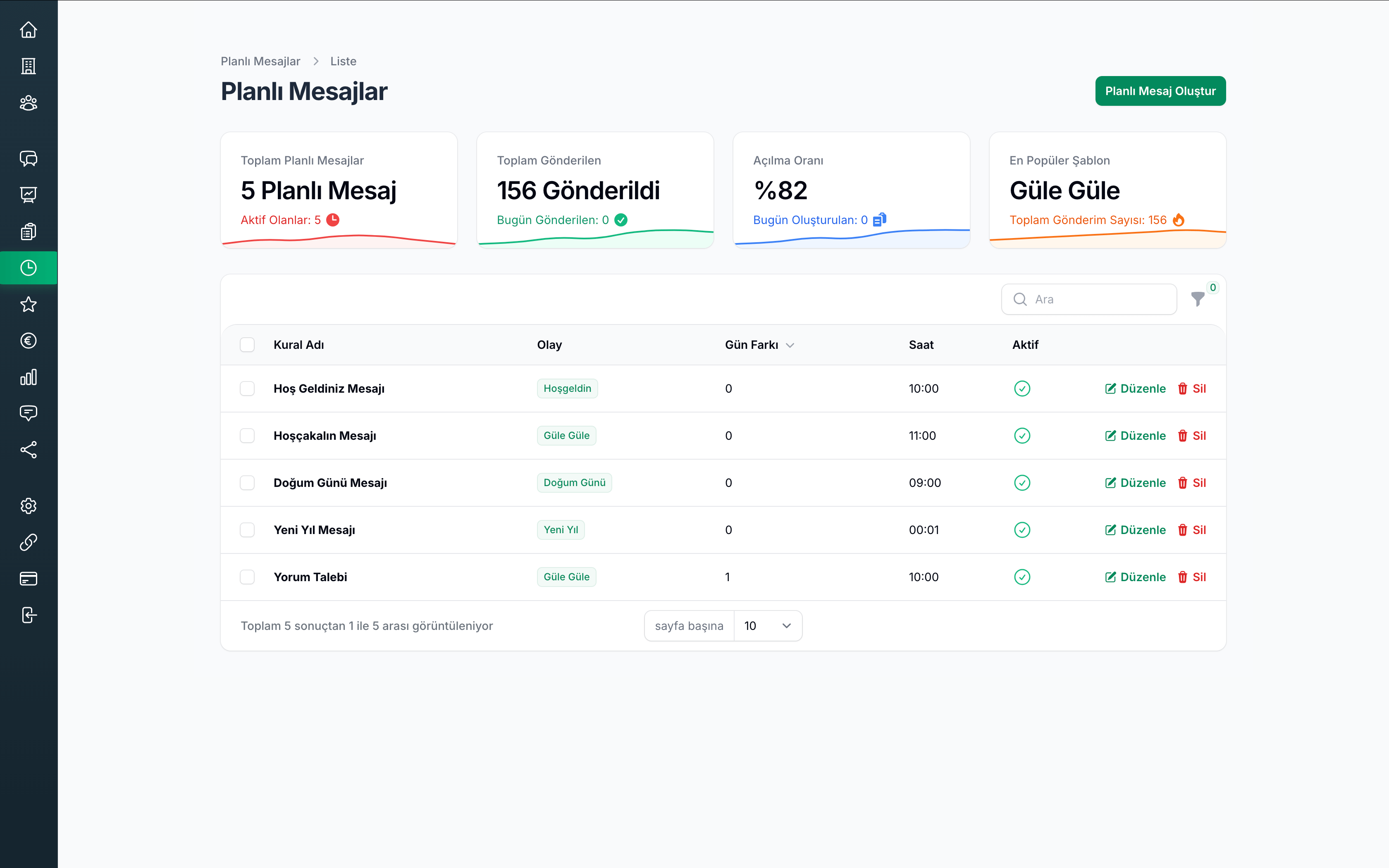 Giriş öncesi bilgiler veya çıkış sonrası anket linklerini planlanan zamanda gönderir.