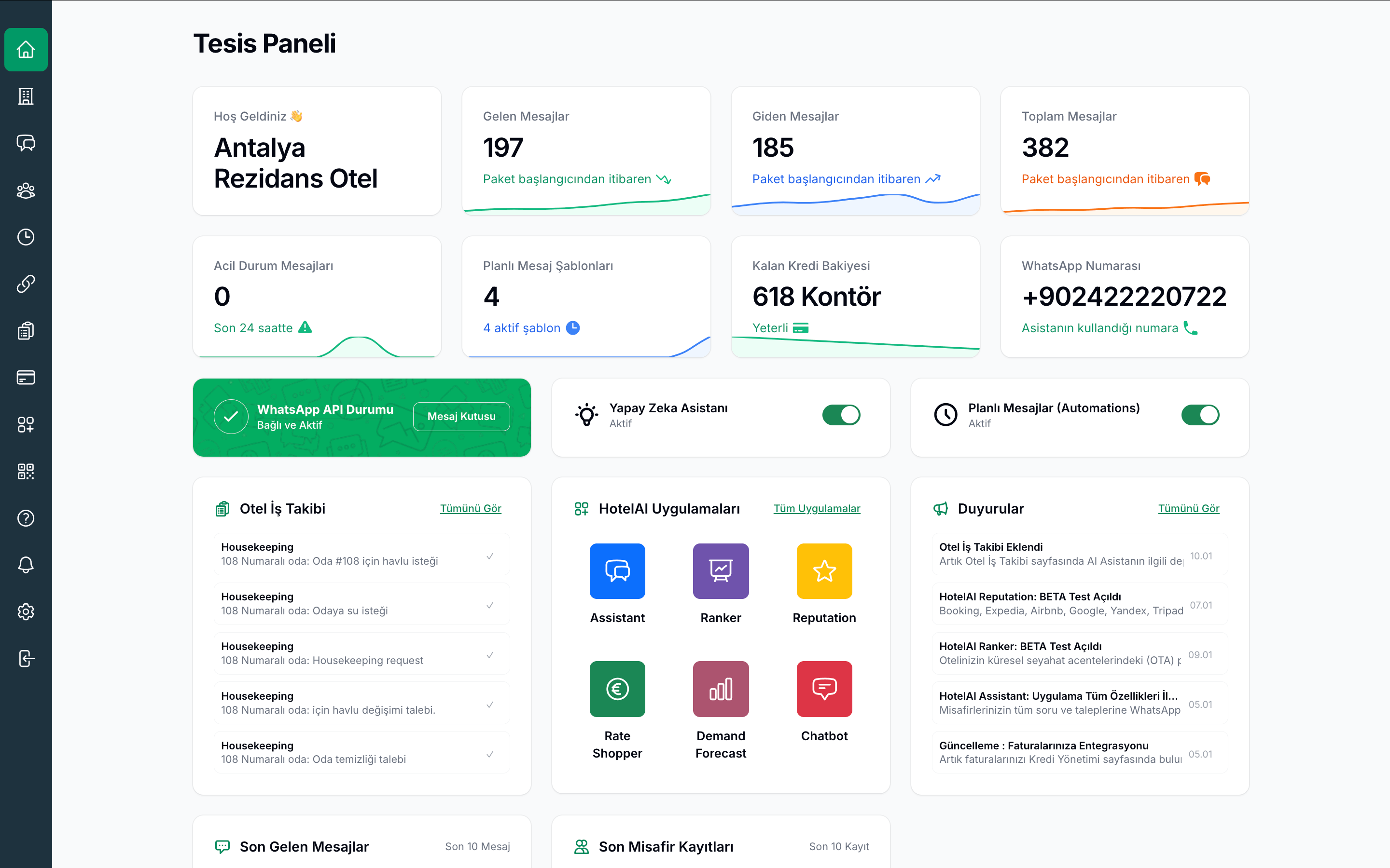 Hotel AI Chatbot greets website visitors, answers their questions, and guides them toward bookings. It provides instant service to global guests with its multilingual support.
